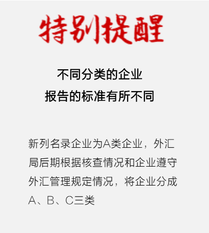 • 没有按规定报告的,会被移交外汇检查部门或被降为B类甚至C类