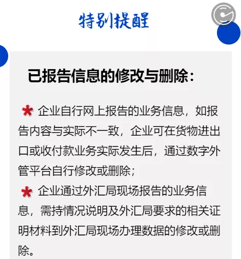 对已报告且未到预计进出口或收付汇日期的上述业务,企业可根据实际情况调整相关报告内容。