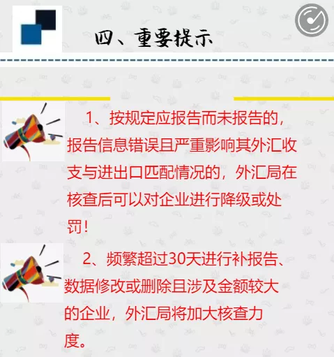 那么,由于贸易信贷或贸易融资等原因造成企业资金的收付时间和货物的报关时间可能不完全一致的情况,就需要企业向外汇局的系统进行报告,否则就可能会面临外汇局的检查甚至降级至B类、C类企业。
