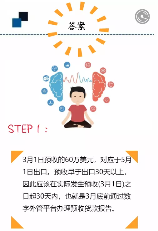 但是对于间隔超过时限的业务,企业需要报告外管预计的收/付汇时间或进/出口时间,经报告调整以后才能确保当前的资金流和货物流总量核查匹配。