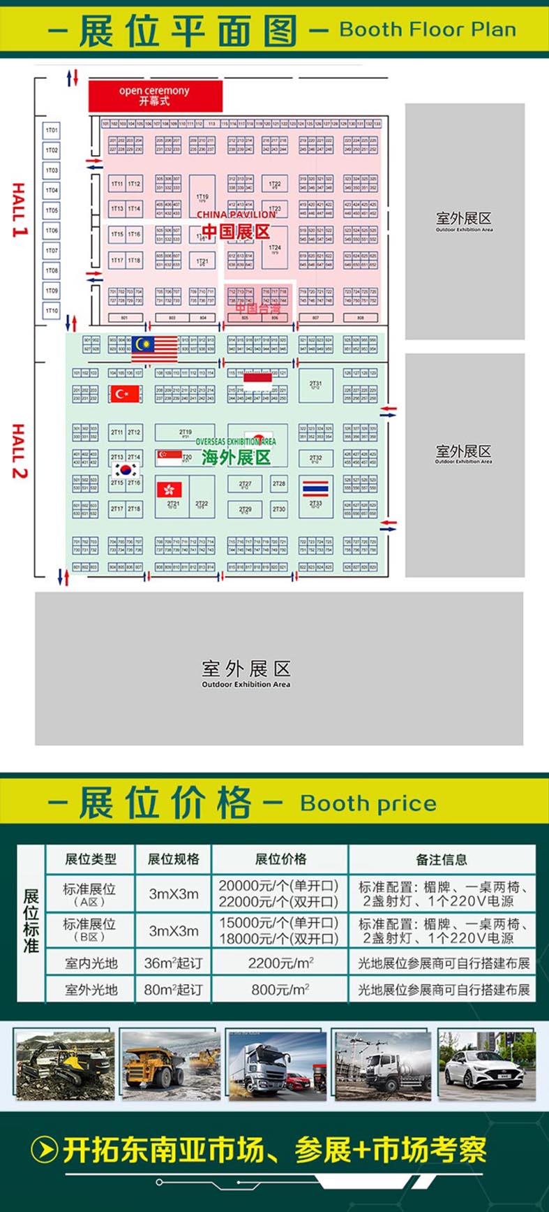 为了深化RCEP产业链互促合作,并以高中质量实施。本届展会将突出东南亚、东盟“一带一路”沿线国家贸易循环促进的办展理念,全方位展示工程机械、矿山车辆、商乘车辆、重型基建设备等领域新产品、新技术及面向客户提供解决方案,并配套多场高质量外贸展出与交流论坛。本次展出规模3万平方米,共设1200个展位,将吸引来自中国、印尼、越南、菲律宾、泰国、日本、韩国、巴基斯坦、柬埔寨、新加坡、缅甸等多个东南亚国家专业采购商莅临参观、参展。
